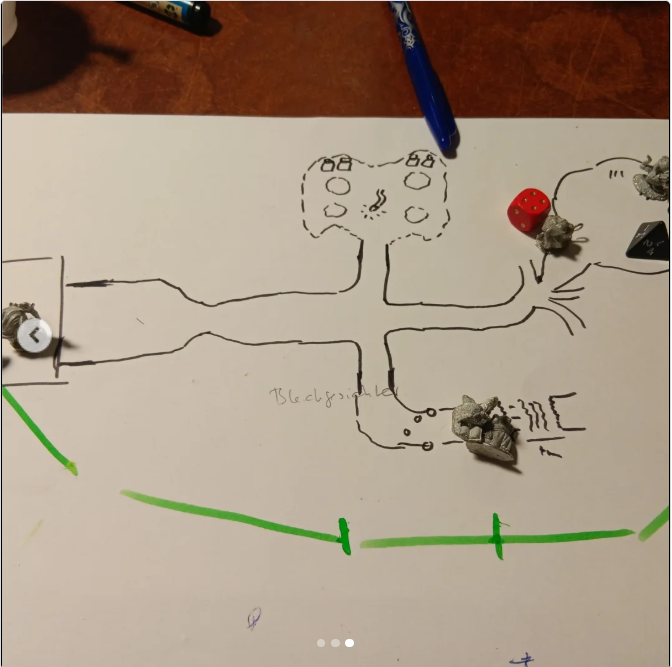 14 Kinder und Jugendliche zwischen 6 und 14 spielten #Mausritter und #troikarpg. Unabgesprochen hatten beide Runden ein 🐸Schleim- und 🐌 Schneckenthema. Auch die Tische sahen danach aus wie von schleimigen Heerscharen verwüstet 😄. Spruch des Tages: "Gefangennehmen ist schlimmer als er Tod! Wer will uns schon dienen? Wir sind sieben Mäuse! 🐹" Bis zum 2. Sonntag im November! #pnp #ttrpg